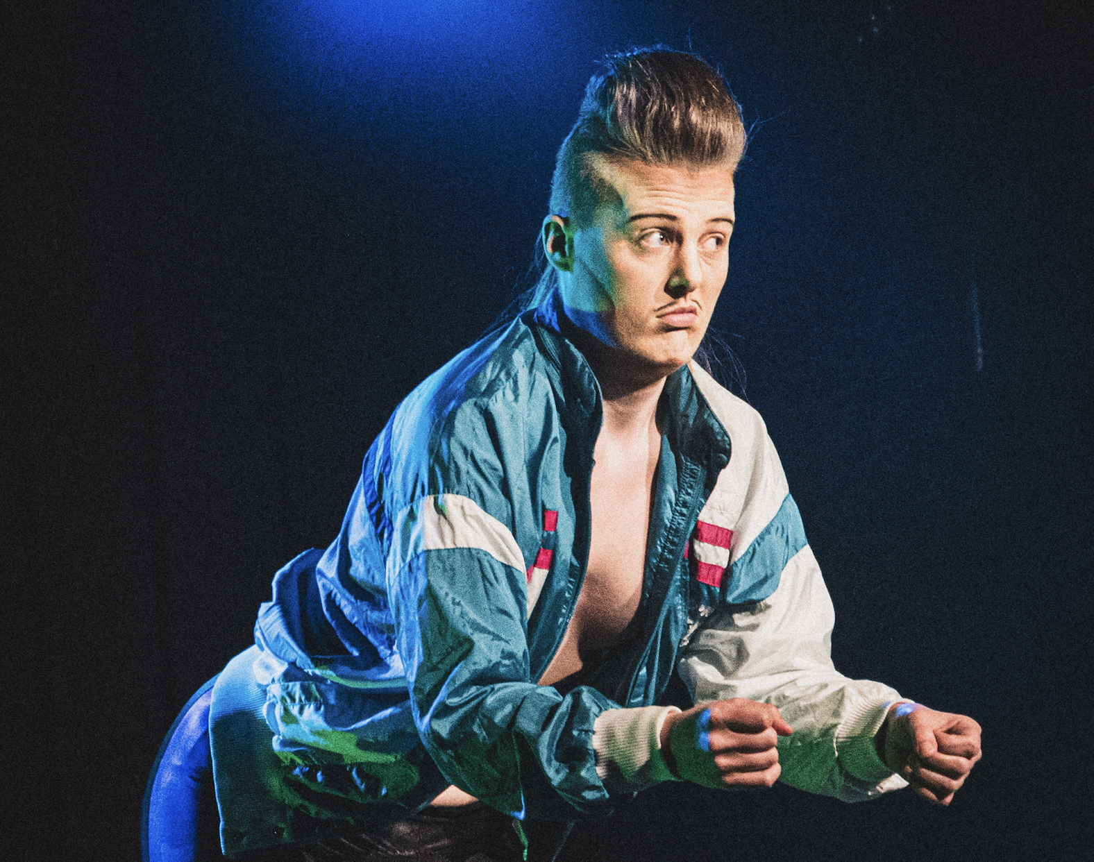 Raoul Les Mécaniques est un dragking bruxellois membre de La Barakakings et co-host du show 100% Disney Queer « Draguna Ma Tata ». Artiste multidisciplinaire, il questionne la masculinité toxique avec son univers de rockmantique loveur tout droit sorti des années 80 et sa mine déconfite face au féminisme. Danse, chant live et jeu clownesque, Raoul tient à inscrire ses performances dans son militantisme queer et féministe décoloniale.